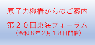 原子力機構東海地区では、下記の通り『第20回東海フォーラム』を開催しますのでご案内いたします。
